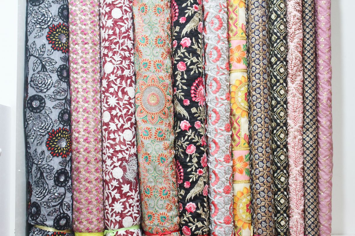 จำหน่ายผ้านำเข้าจากประเทศอินเดีย งานปัก เก๋ สวย บนผ้าชีฟอง